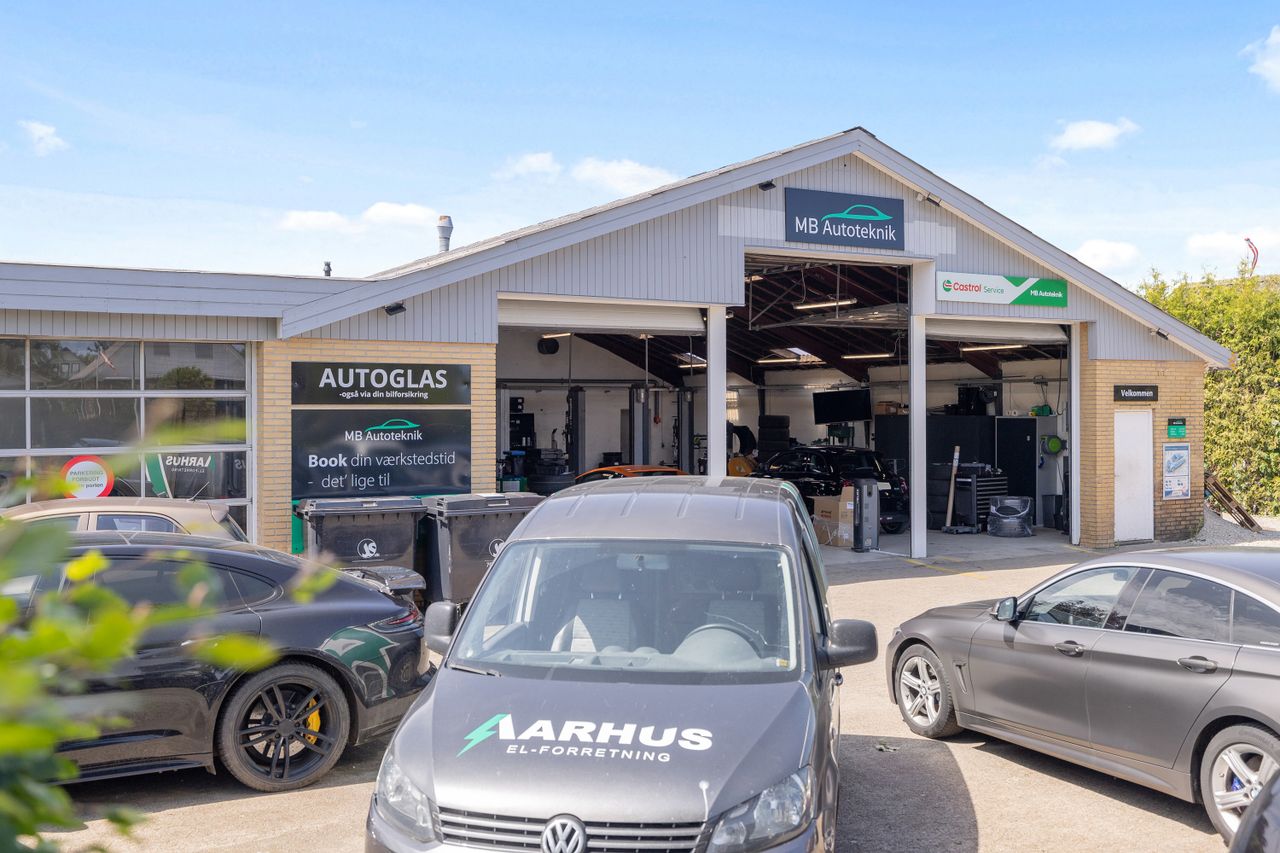 Erhvervsdelen rummer stort værksted med kontor/kundemodtagelse, personaleafdeling med toilet samt skur/lager. Der er 3 store elporte, hvoraf en måler ca. 2,5 b x ca. 4 h og de to andre måler ca. 2,5 b x ca. 3 h. I erhvervsdelen er der installeret trykluftskompresser, pumpe til jordvarmeanlægget og et nyere gasfyr. I dag er det udlejet til en automekaniker, som har haft forretning der siden 2021. Tidligere har den nuværende ejer drevet busselskab på adressen i ca. 46 år.