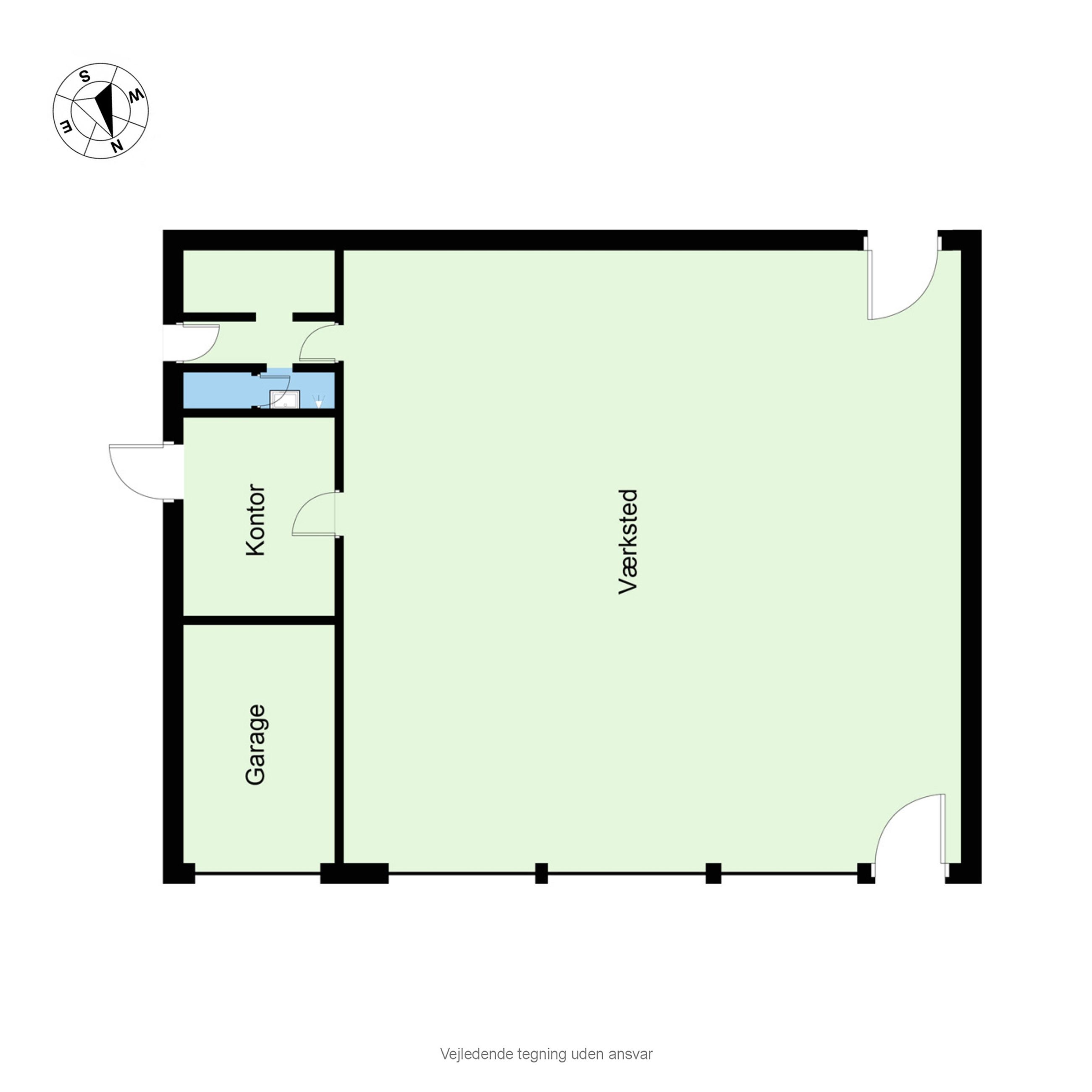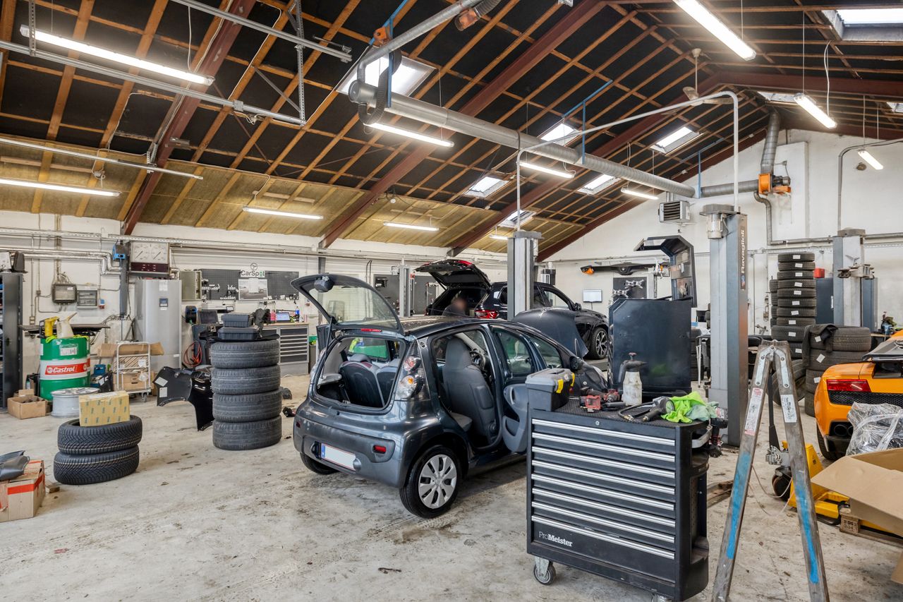 - 351 m2 erhverv med 3 store elporte (Er i dag udlejet til et autoværksted)