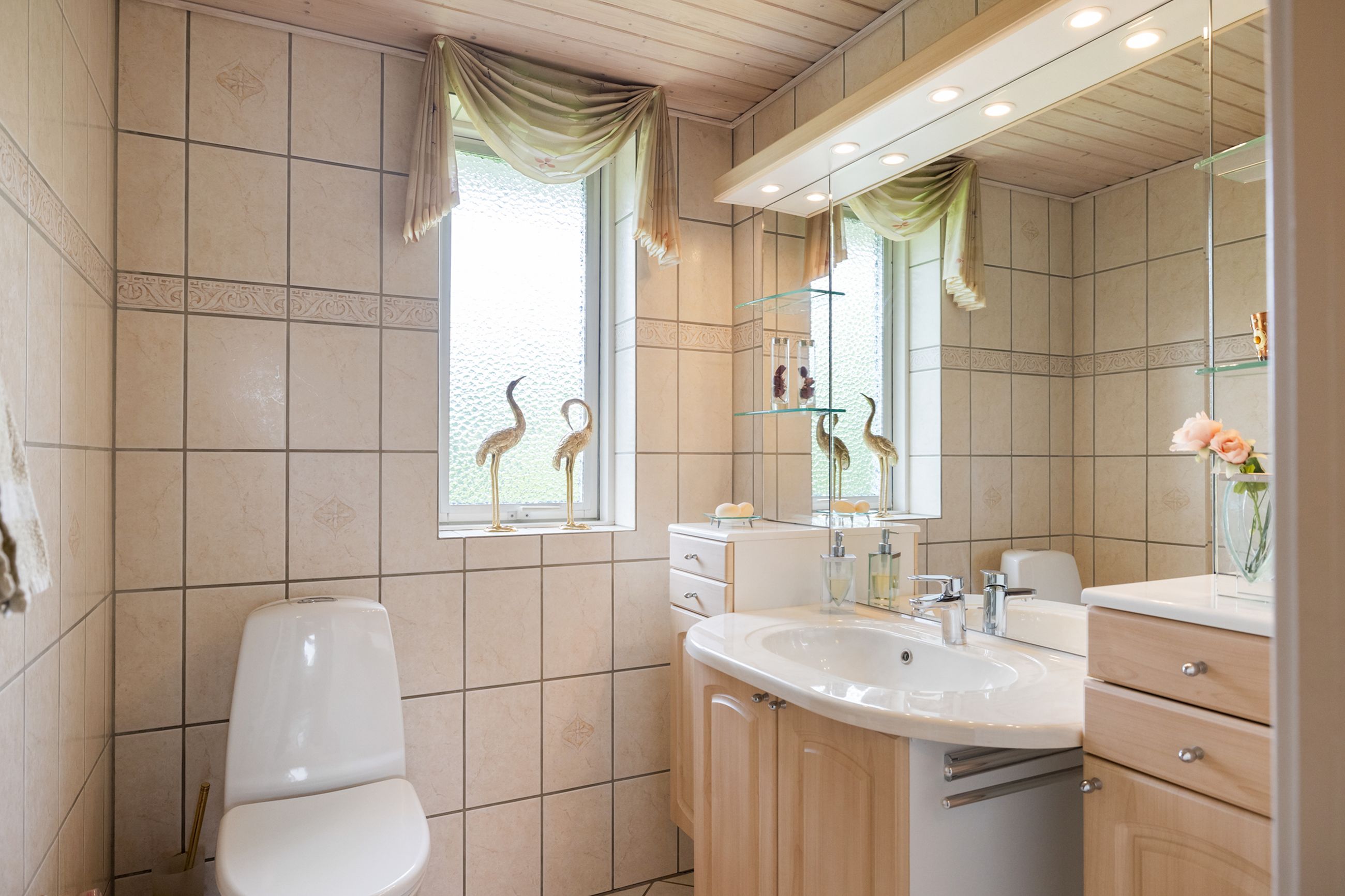Boligen rummer en stor stue og spisestue, pænt, nyere HTH-Køkken, bryggers, badeværelse og gæstetoilet. Der er gulvvarme i køkken, bryggers, badeværelse og gæstetoilet. Dertil er der 4 værelser, hvor det ene i dag er registreret som erhverv/kontor.